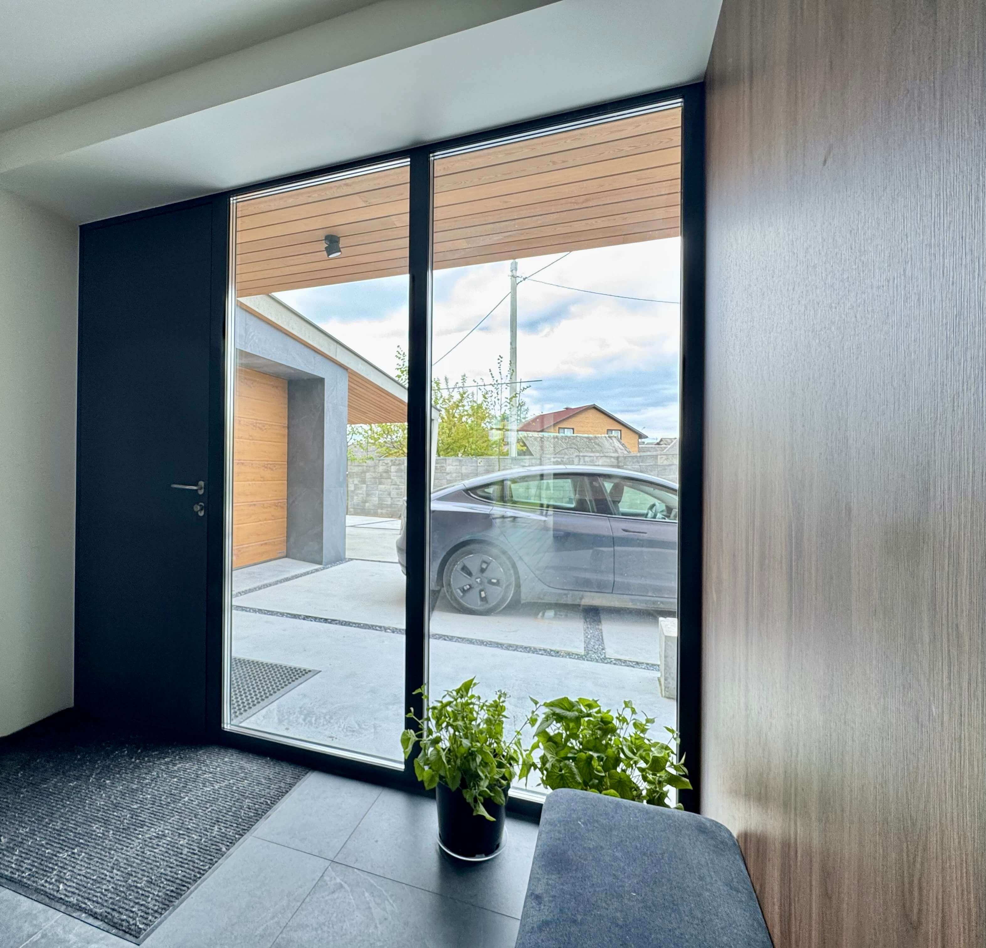 Алюминиевый профиль с терморазрывом надёжно сохраняет тепло даже в холодном климате. Дверь не промерзает, не деформируется и отлично подходит для частного дома, коттеджа или таунхауса.